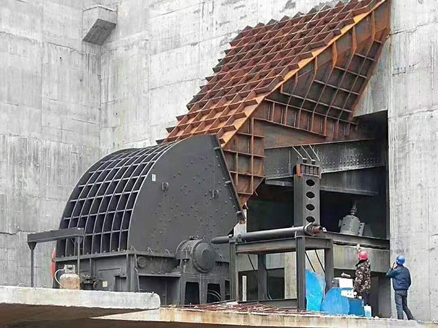 錘式破碎機由機殼、轉子、錘頭、支架、襯板等組成。電機帶動轉子在破碎腔內高速旋轉,物料自上部給料口給入機內,受高速運動的錘子的打擊、沖擊、研磨作用而破碎,傳統破錘式破碎機在破碎后,小于篦條空隙的物料通過篦條排出,我公司采用可調整節(jié)反擊襯板的方式出料,避免了因為物料不規(guī)則反復擊打,產粉量大的問題;一個人一把扳手即可調整出料粒度,免去了更新篦條的繁瑣;大塊物料主動避讓,減少轉子損傷或堵料,同時,附加了反擊功能,出料粒型滿足行業(yè)要求。